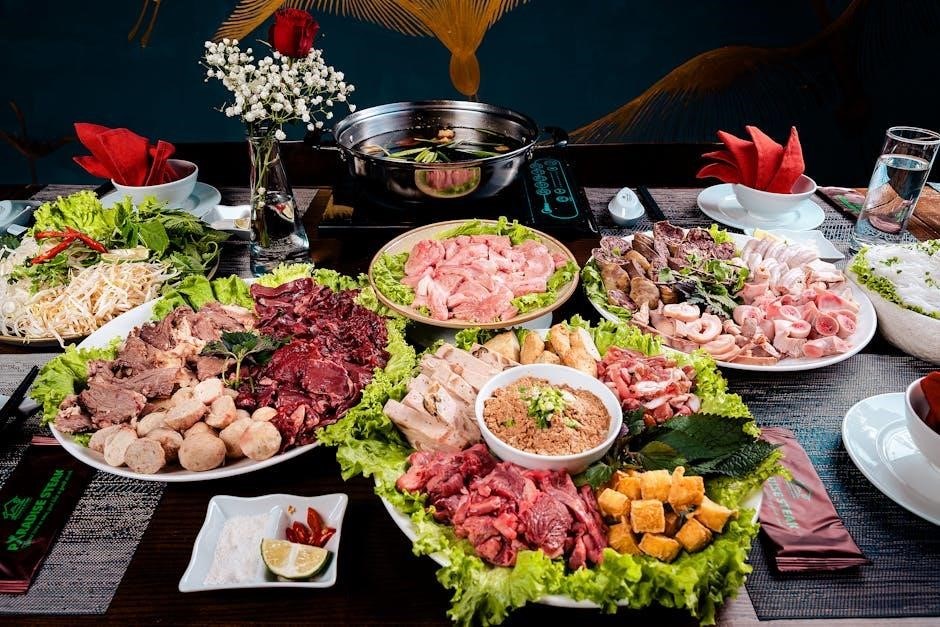 Boiling Point’s menu PDF showcases a robust selection of meat and poultry dishes, designed to complement the restaurant’s sophisticated ambiance and panoramic views – especially prominent at the 360 Restaurant in the Federation East Tower․ These offerings represent a blend of traditional and contemporary culinary techniques․