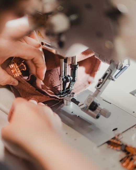 Proper tension ensures the top and bobbin threads interlock correctly within the fabric. Manuals illustrate how to adjust both upper and lower tension dials. Incorrect tension leads to looping‚ puckering‚ or thread breakage – common issues addressed in troubleshooting sections.